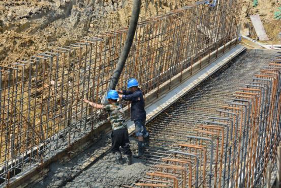 工人正在澆筑底部箱涵