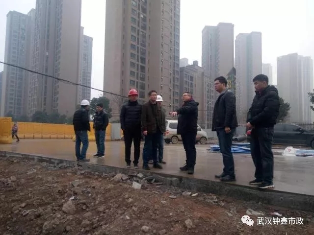 1月16日下午三點(diǎn),武漢市城投集團(tuán)公司副總經(jīng)理盛華在武漢市漢陽(yáng)市政建設(shè)集團(tuán)公司副總經(jīng)理、鐘鑫公司董事長(zhǎng)方紫微的陪同下,前往夾套河骨干箱涵工程二標(biāo)視察工程進(jìn)展情況并進(jìn)行現(xiàn)場(chǎng)工作指導(dǎo)。