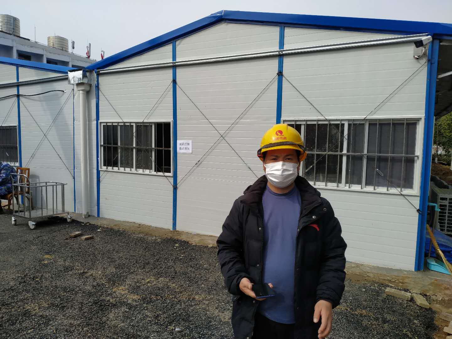 “最讓我難忘的就是在火神山,同伴們團結一心、眾志成城,沒有情緒,不發(fā)牢騷,有什么任務都是第一時間馬上完成,有什么困難大家都積極幫忙?!痹谶@樣的氛圍中,周江雄感受到了集體擰成一捆繩的力量,他在現場負責施工以及聯系材料,每天只休四、五個小時,起床的第一件事就是詢問工程進度,然后進駐施工現場。連續(xù)的奮戰(zhàn)使他十分疲憊,2月7日的一場雨打斷了他的抗“疫”征程,在雨中堅持施工了一天的他,沒能撐住身體,感到身體發(fā)軟后無法再繼續(xù)奮戰(zhàn),回家休息后的他依然十分牽掛現場情況,當身體慢慢好轉,他又選擇繼續(xù)向前,然而新洲更加嚴格的管控措施阻擋了他前進的腳步,“沒能繼續(xù)和同事肩并肩戰(zhàn)斗,我有些遺憾,但我的心一直在他們身邊,與他們戰(zhàn)斗,繼續(xù)加油,完成使命”,這是他沒能在同事身邊,發(fā)出的最振奮的鼓舞。
