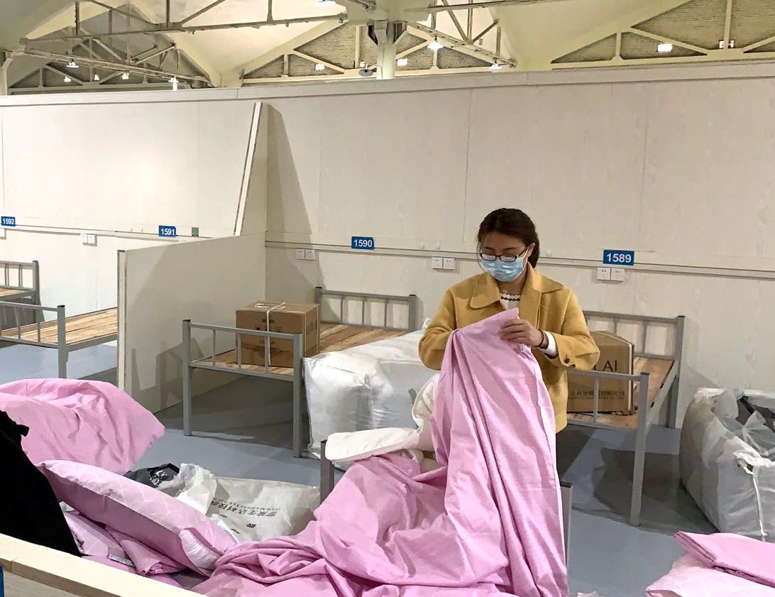 作為武漢內(nèi)環(huán)最大的方艙醫(yī)院,漢陽市政負(fù)責(zé)全部2294張床位的物資鋪設(shè),而這也成為搶建過程中最大的難題。面對(duì)人員緊缺、工作量巨大等困難,四公司所有在漢職工得知消息后,為確保順利完成搶建任務(wù),紛紛積極響應(yīng),主動(dòng)請(qǐng)戰(zhàn),女職工亦奮勇當(dāng)先,貢獻(xiàn)自身的一份力量。因武漢交通嚴(yán)格管制,出行成為一大阻礙,但交通管制阻擋不了腳步,在漢職工有車輛通行證的一個(gè)一個(gè)點(diǎn)位去接,沒有通行證的甚至從隔離點(diǎn)附近騎著自行車、步行前往。物資搬運(yùn)、清點(diǎn)、分揀、鋪設(shè),公司在漢員工上下齊心,心往一處想、勁往一處使,在兩天兩夜的不懈努力下,2294張床位配備的收納箱、床上三件套、洗漱用品等18件套于25日?qǐng)A滿布置完畢。