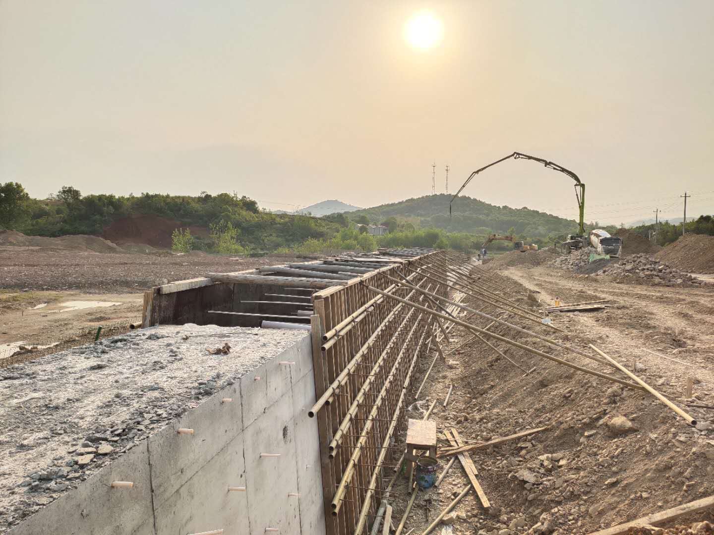 截止1月底,擋土墻施工完成300米,累計(jì)完成27%;雨水管道完成300米,累計(jì)完成27%;挖方完成6.6萬(wàn)方,累計(jì)完成63.2%;填方完成4萬(wàn)方,累計(jì)完成93.7%。受疫情影響,2個(gè)月處于停滯狀態(tài)。為保障項(xiàng)目安全有序復(fù)工,盡快把失去的工期“搶”回來(lái),該項(xiàng)目部第一時(shí)間了解當(dāng)?shù)貜?fù)工復(fù)產(chǎn)要求以及尋求武漢政策支持,分期分批進(jìn)駐項(xiàng)目現(xiàn)場(chǎng)。嚴(yán)格按照疫情防控方案落實(shí)各項(xiàng)工作,全體員工租住當(dāng)?shù)鼐用衩穹?,一棟兩層,分別作為會(huì)議室和住宿,按照一人一間房安排住宿;項(xiàng)目現(xiàn)場(chǎng)通過(guò)微信群、宣傳標(biāo)語(yǔ)和現(xiàn)場(chǎng)展板等方式積極開(kāi)展宣傳,施工現(xiàn)場(chǎng)采取了封閉式管理、實(shí)行全員戴口罩,提前儲(chǔ)備了口罩、護(hù)目鏡、消毒水、溫度計(jì)等防疫物資,保障項(xiàng)目現(xiàn)場(chǎng)防疫物資不中斷;每日為項(xiàng)目人員測(cè)量體溫、入場(chǎng)檢測(cè)實(shí)名登記、進(jìn)入項(xiàng)目車(chē)輛及人員定時(shí)消毒和分批就餐等手段切實(shí)做好施工期間防疫工作。確保了防疫生產(chǎn)“兩不誤”。整個(gè)項(xiàng)目部團(tuán)結(jié)一心,鼓足干勁,奔著共同目標(biāo)毫不松懈,挑燈夜戰(zhàn)趕進(jìn)度,爭(zhēng)分奪秒搶工期。通過(guò)加大人、材、機(jī)的投入、增加斷面等多種方式加快施工,截止4月16日,擋土墻完成施工220米,累計(jì)完成520米,完成47.27%;截洪溝溝槽開(kāi)挖150米,混凝土澆筑100米,完成9%。工程進(jìn)度嚴(yán)格按總進(jìn)度計(jì)劃有序進(jìn)行。